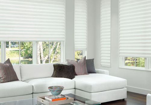 The fluid, unique look of Solera® Soft Shades is created by combining the soft folds of a classic Roman shade with the construction of a cellular shade. Internal lift cords provide a clean look, and enhanced child and pet safety.